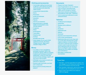 EF Tours Japan Packing List